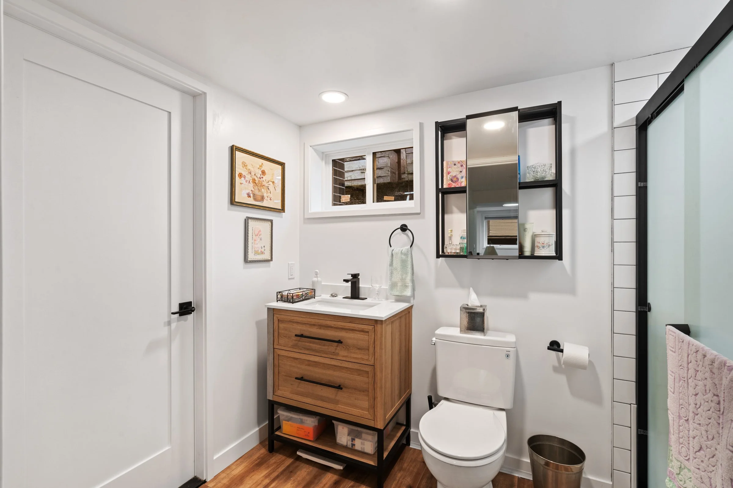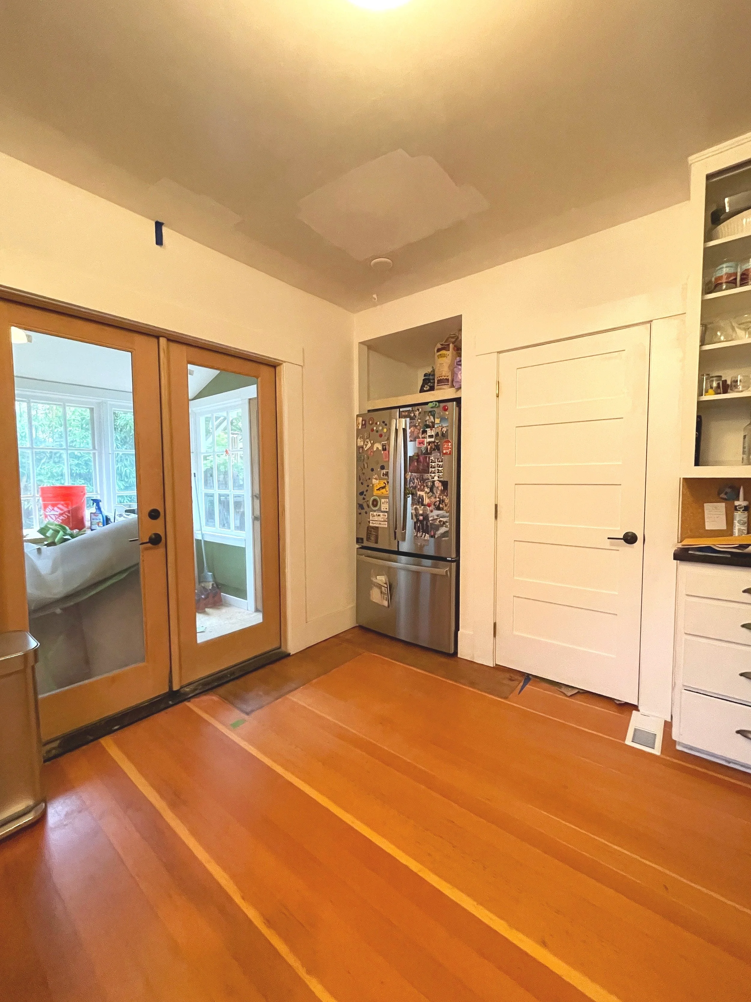 This unfinished basement in Southeast Portland needed to be converted to an accessible apartment with new exterior stairs, kitchenette, bedroom, and bathroom for the homeowner’s relative to age-in-place. The project also included reconfiguring their main kitchen to fit a larger fridge and installing french doors to a covered exterior space. Additional work included tweaking their converted attic, updating the outdated water heater to a heat pump, and adding internet services. The clients made this project work within their budget and were able to learn a little bit about construction themselves!